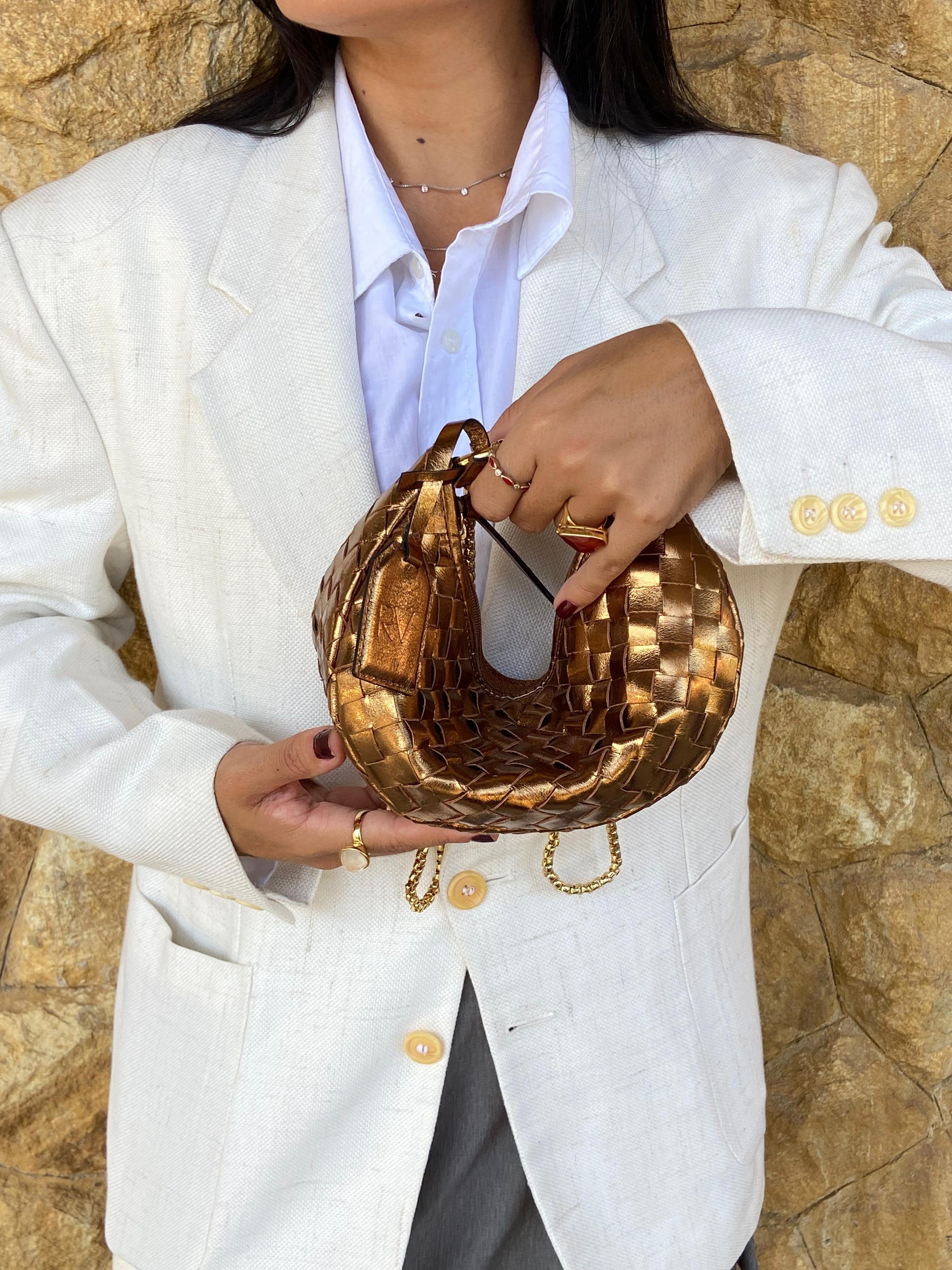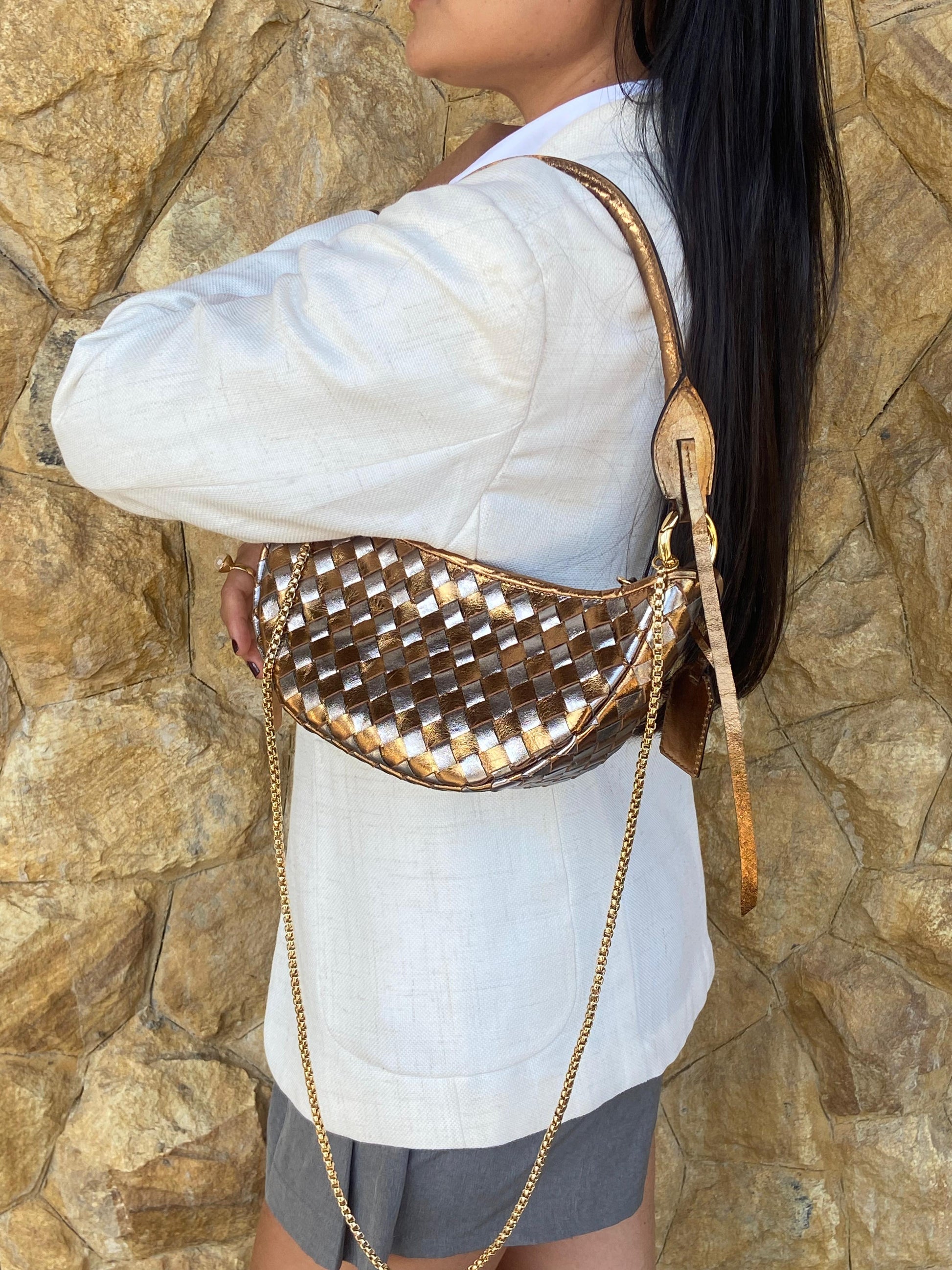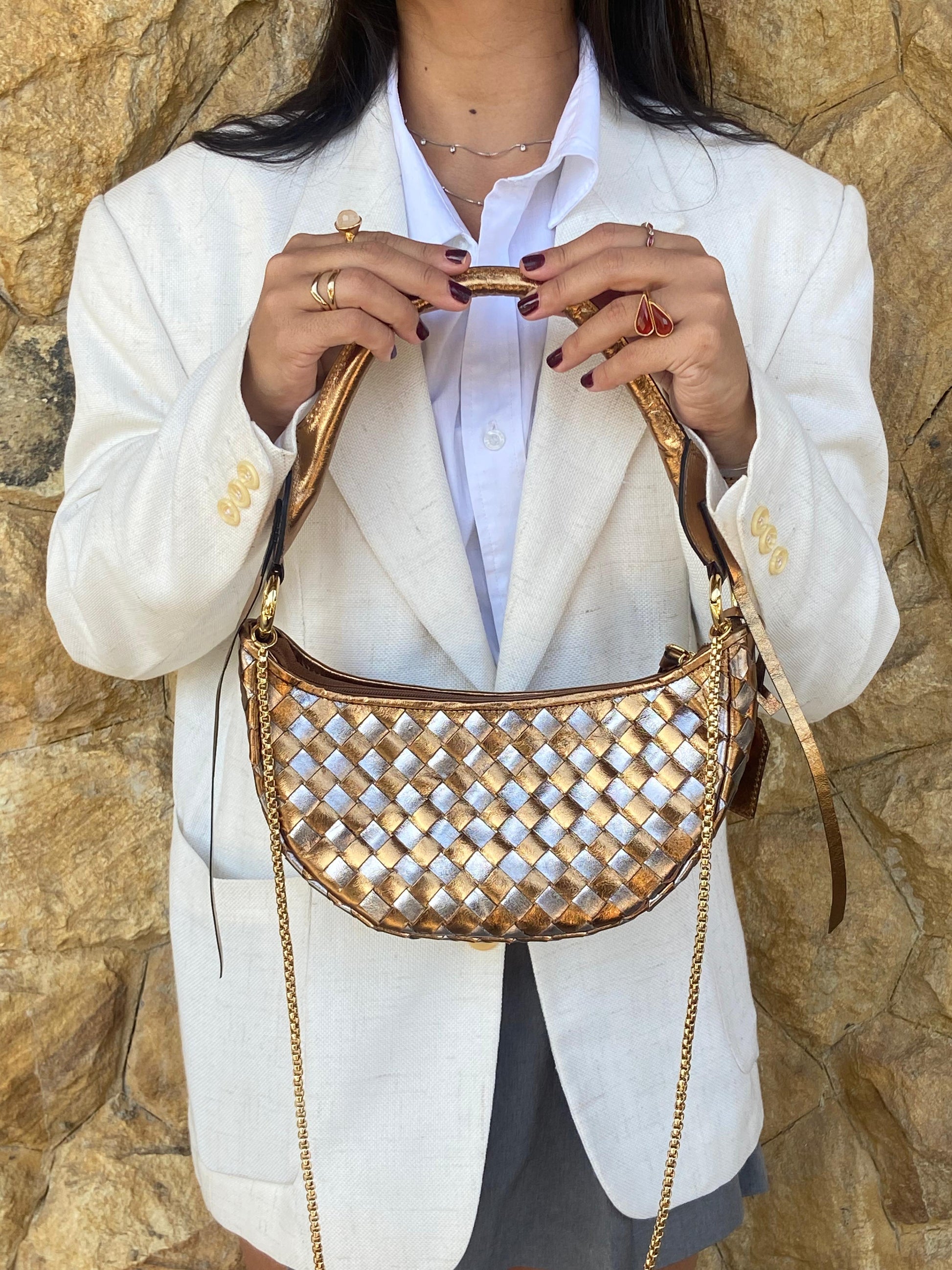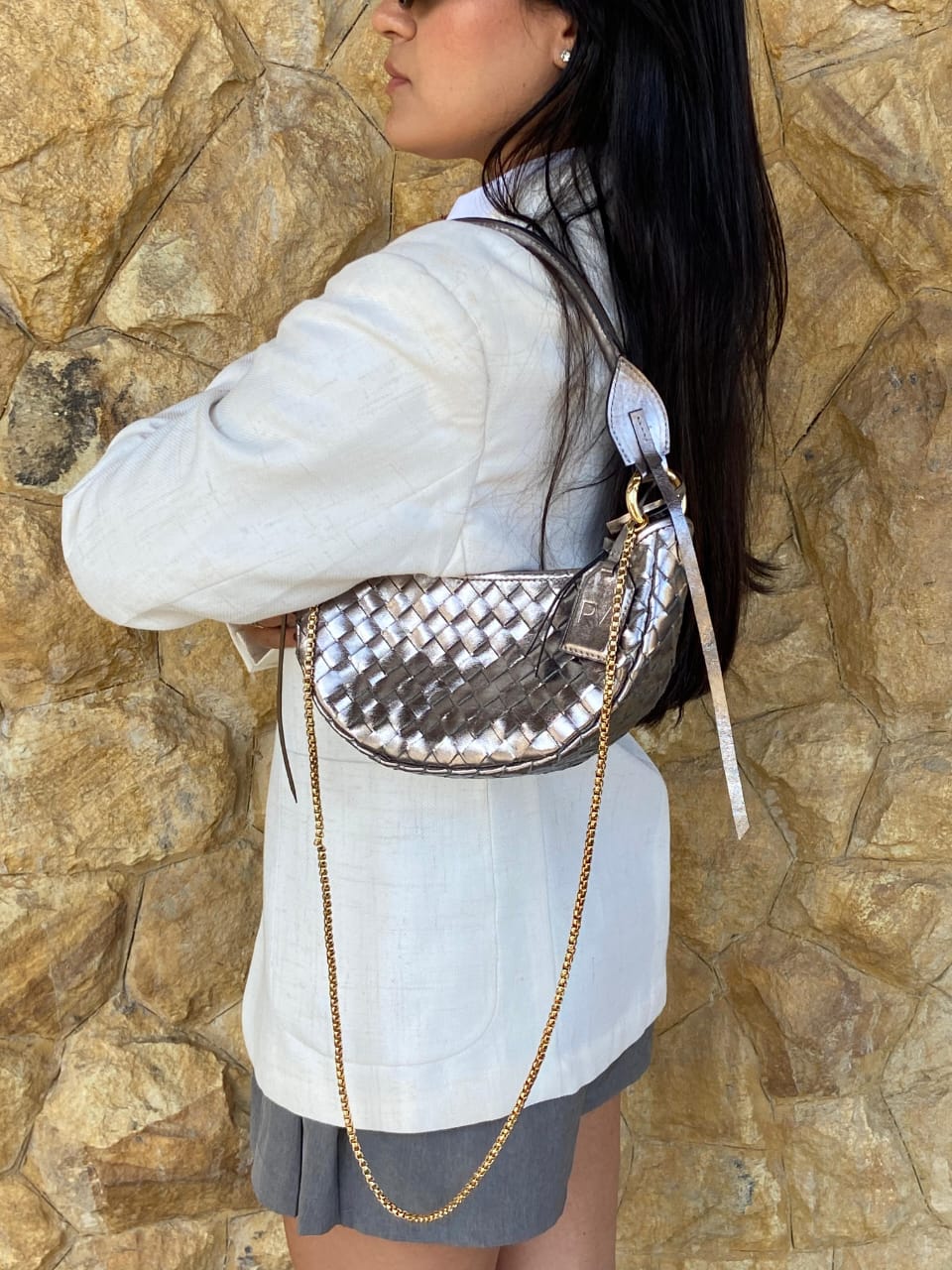 A Bolsa Elisa une o melhor do trabalho artesanal com a versatilidade de uma peça moderna. Feita em couro legítimo, seu design trançado à mão confere um toque único e elegante. A alça ajustável e removível, banhada a ouro 18k, permite que a bolsa seja usada de diferentes maneiras, atendendo a várias ocasiões com sofisticação.