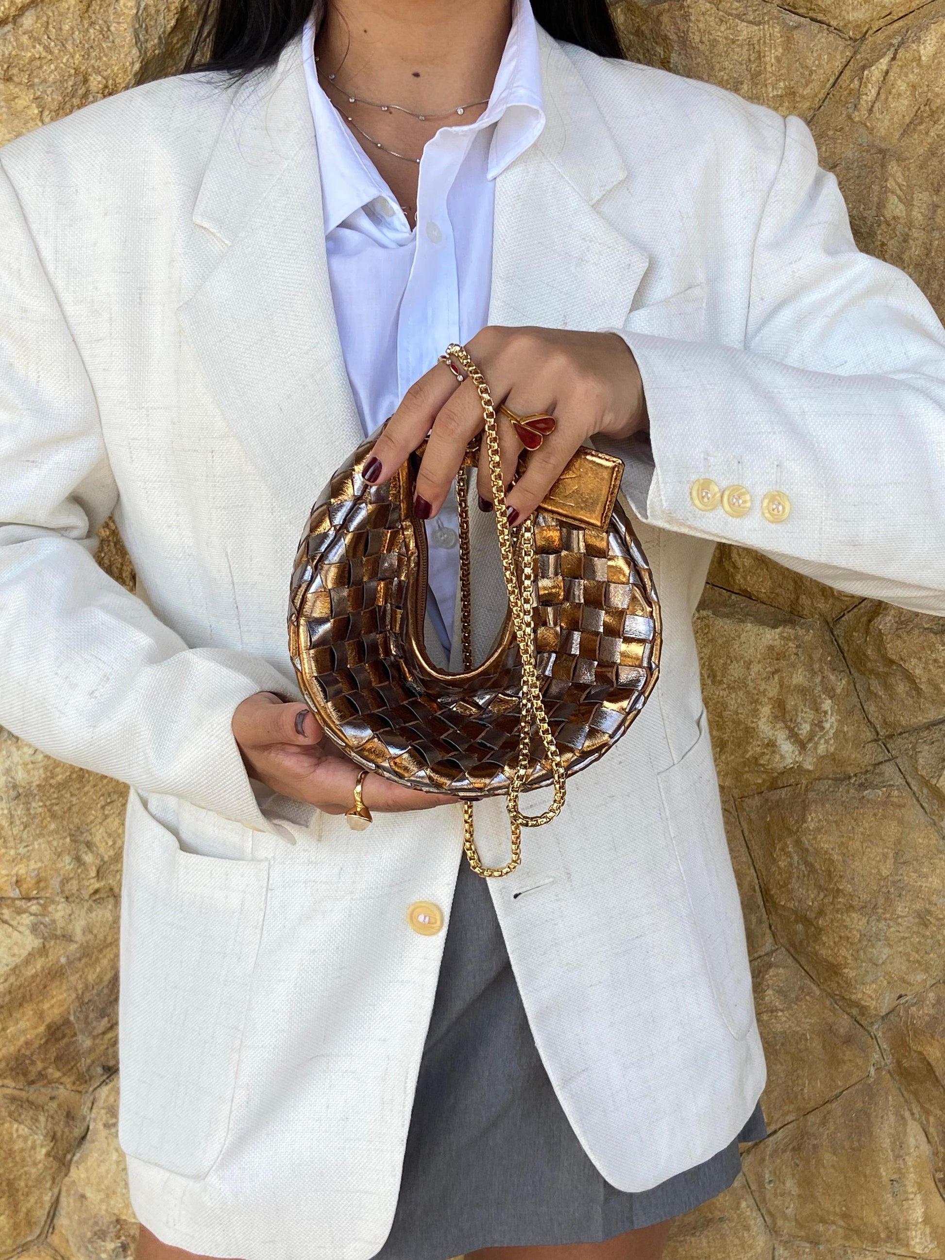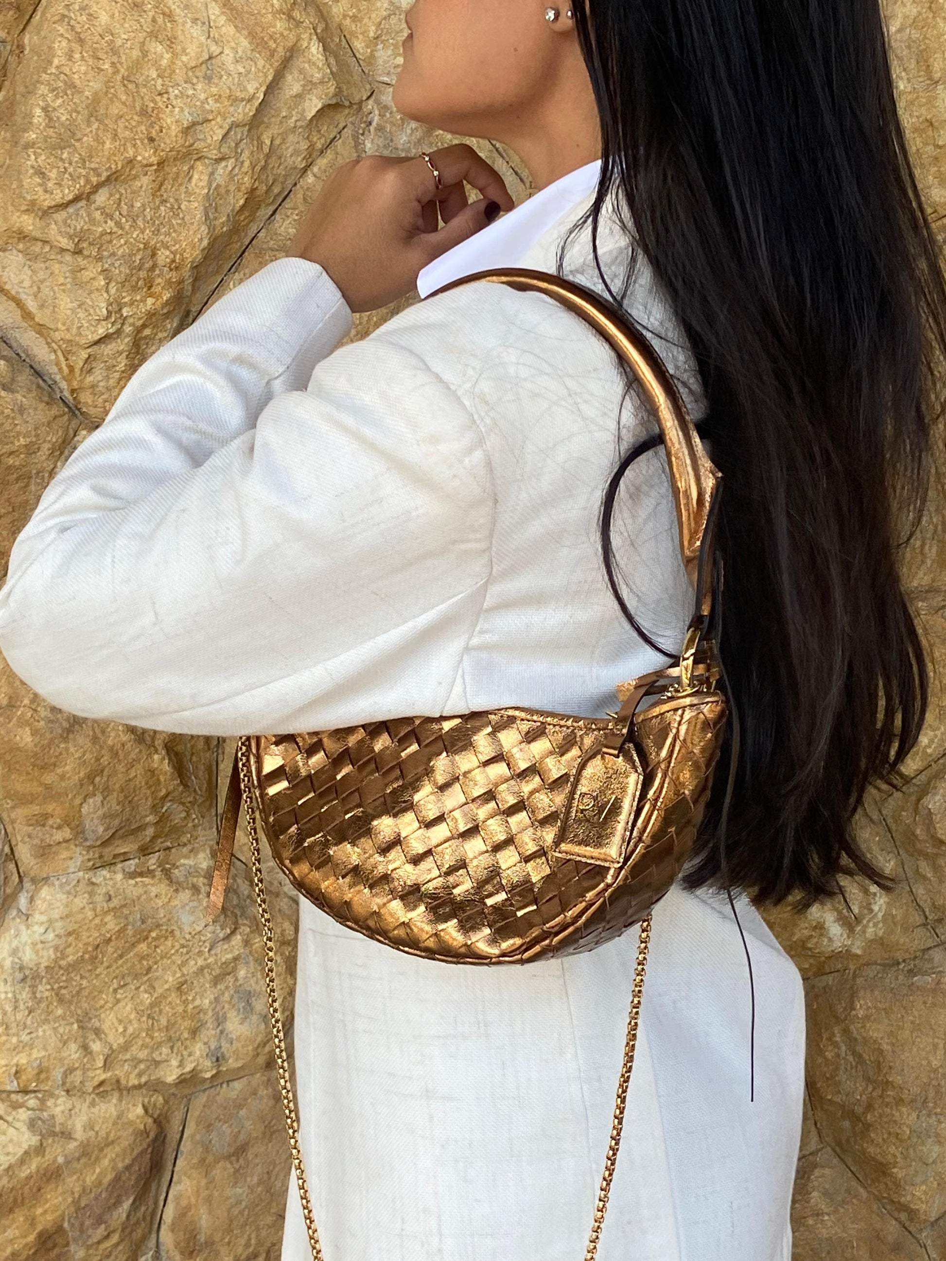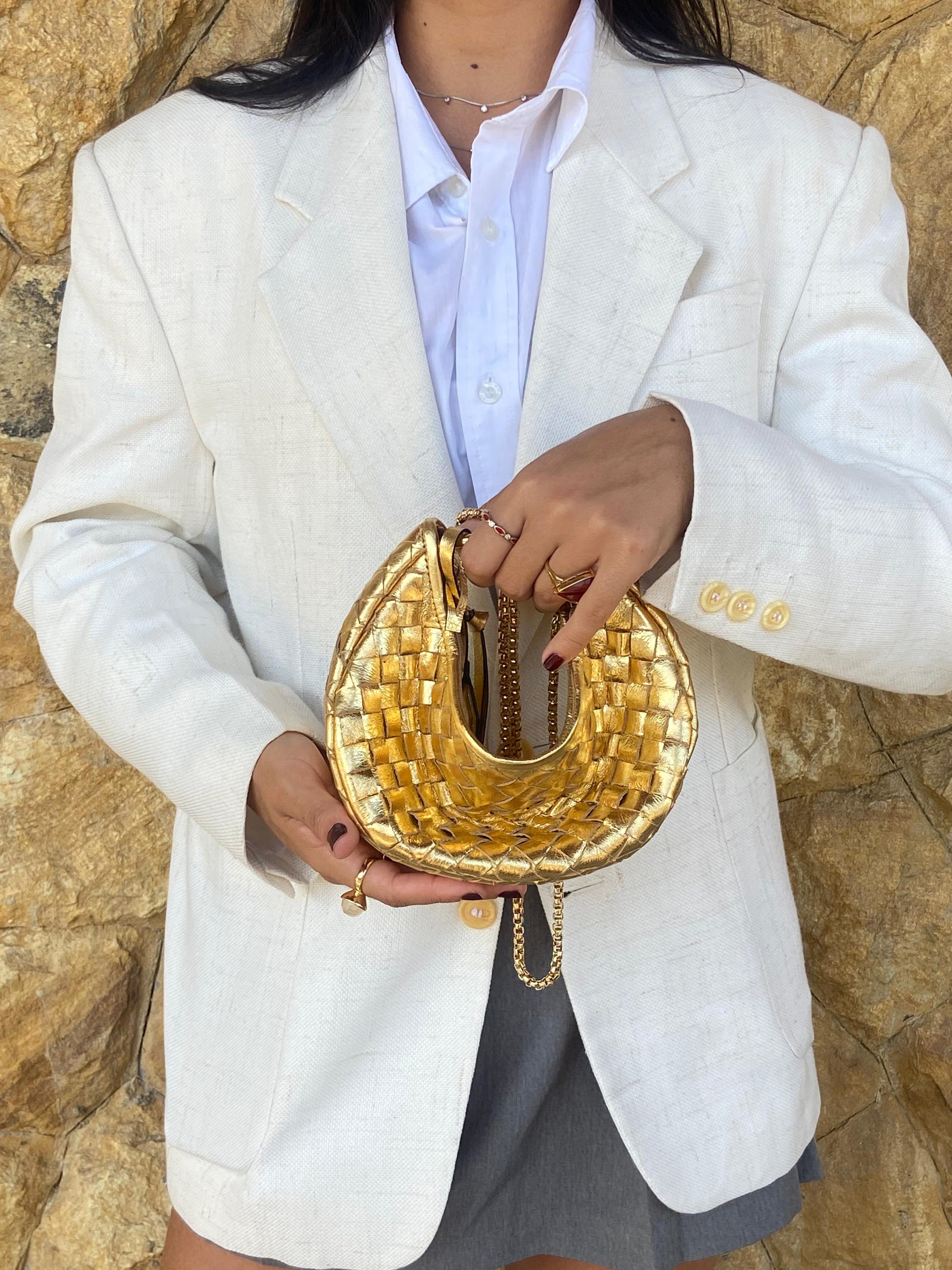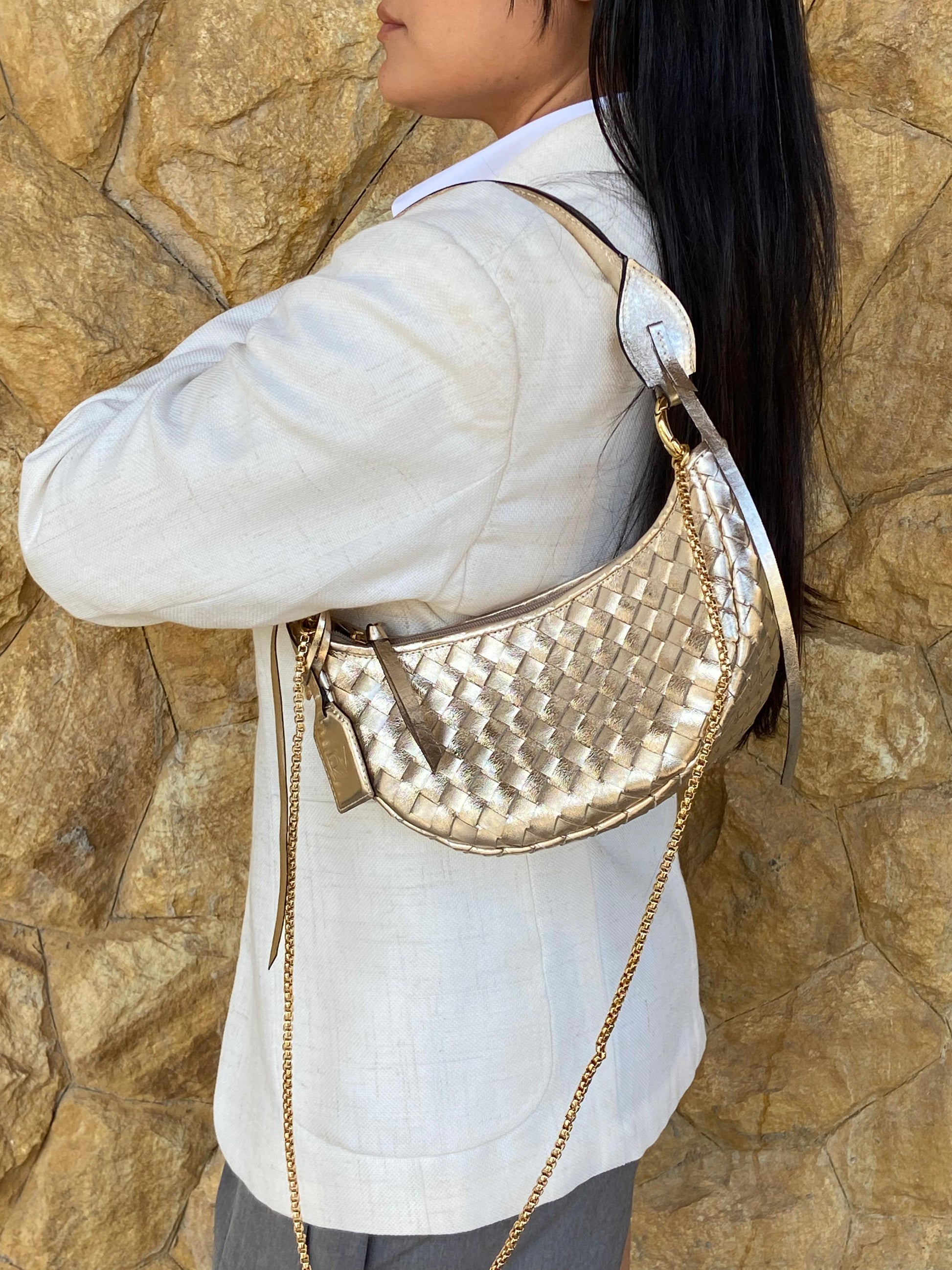 A Bolsa Elisa une o melhor do trabalho artesanal com a versatilidade de uma peça moderna. Feita em couro legítimo, seu design trançado à mão confere um toque único e elegante. A alça ajustável e removível, banhada a ouro 18k, permite que a bolsa seja usada de diferentes maneiras, atendendo a várias ocasiões com sofisticação.
