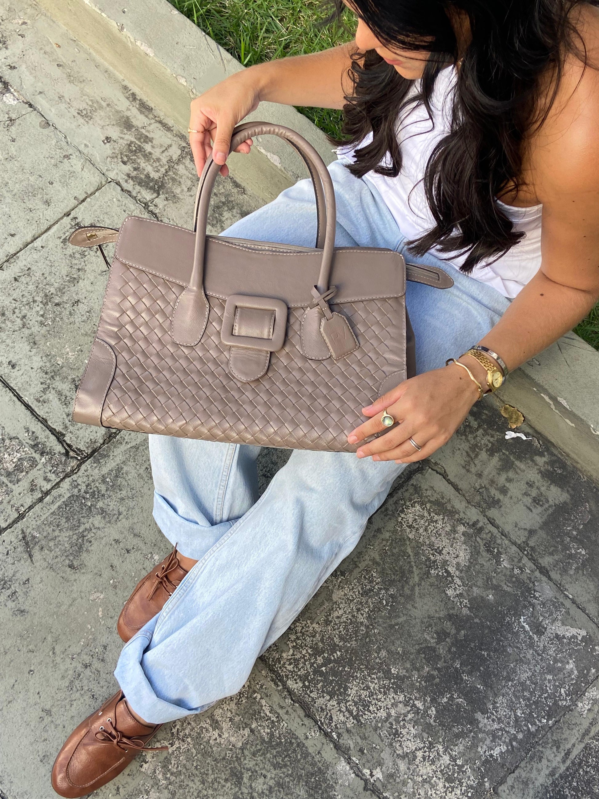 A Bolsa Érica une design clássico e modernidade em uma peça única. Com estrutura elegante, feita em couro legítimo com acabamento trançado na parte frontal, ela é perfeita para elevar qualquer look. O detalhe da fivela frontal traz personalidade, enquanto o espaço interno garante praticidade no dia a dia.