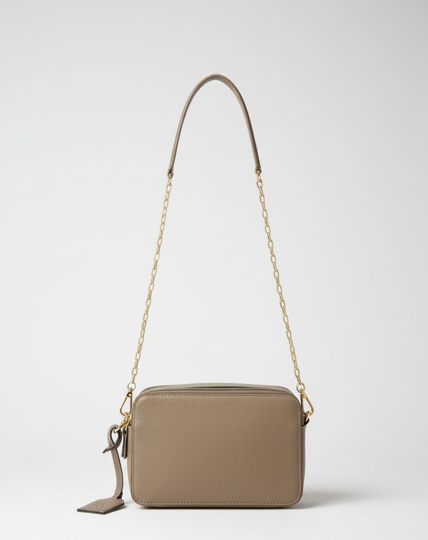 Seu grande diferencial está na alça mista, que combina o toque clássico da corrente dourada com o conforto do couro no apoio e ombro, permitindo transitar com facilidade entre eventos formais e compromissos casuais. Por ser um modelo estruturado e versátil, ela se adapta perfeitamente ao seu ritmo, podendo ser usada no ombro ou transversalmente.